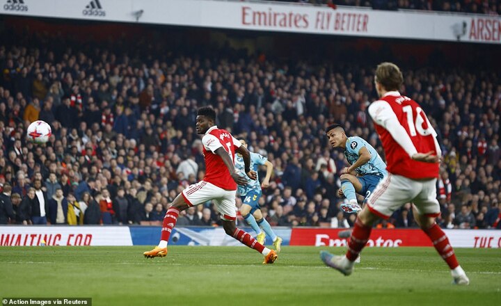 The Gunners were back in it soon after. Bukayo Saka crossed from the right for Gabriel Martinelli to fire home and half the arrears.