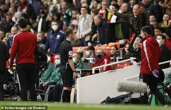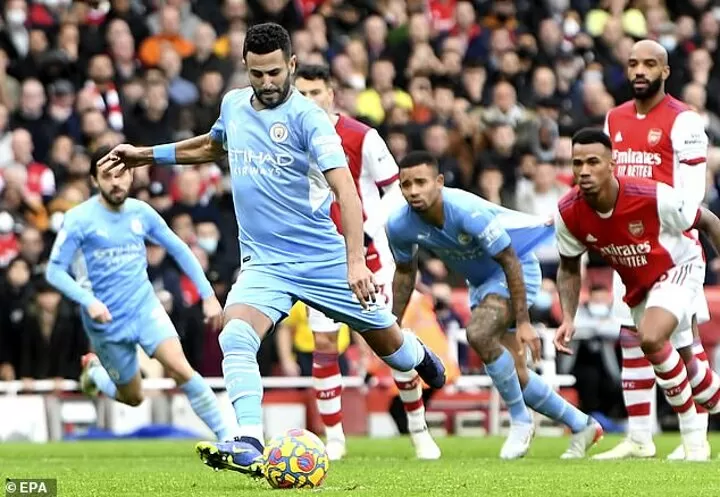 Following a VAR check, Granit Xhaka was penalised for a tug on Bernardo Silva in the box, while Gabriel was given his marching ordered for two yellow cards either side of Riyad Mahrez's equaliser from the spot.