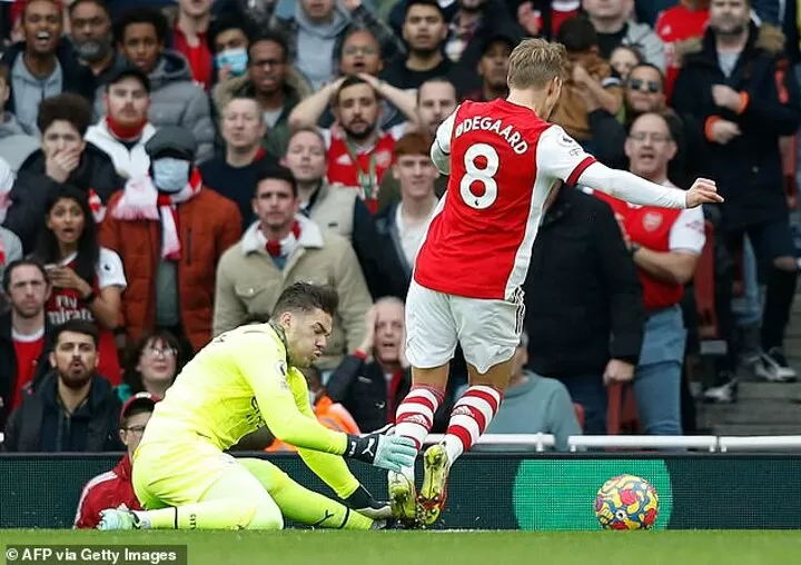 Boos echoed around the Emirates stadium as Gunners fans were left aggrieved that a similar challenge on Martin Odegaard from Ederson earlier in the game had not undergone a review.