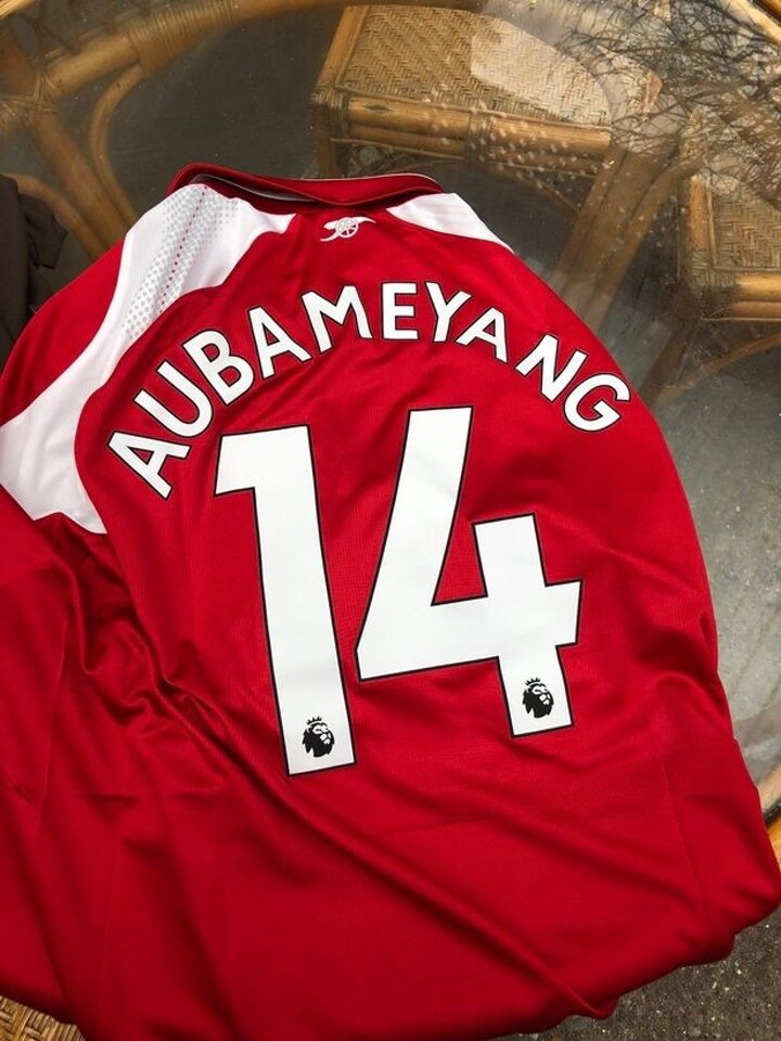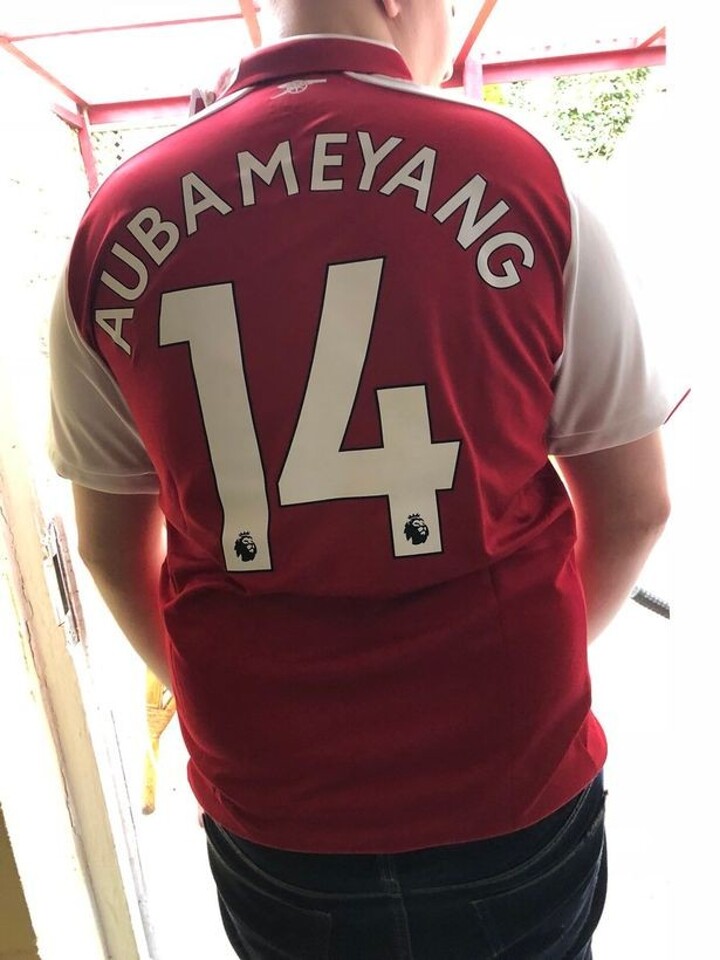 Arsenal have yet to complete a transfer for Pierre-Emerick Aubameyang. But already one overly confident Gunners fan has got the Gabon international's name printed on the back of his Arsenal shirt.