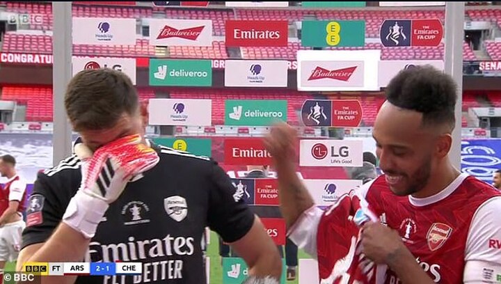 Emiliano Martinez couldn't contain his emotions as Arsenal lifted the FA Cup trophy on Saturday after beating Chelsea 2-1 at Wembley.