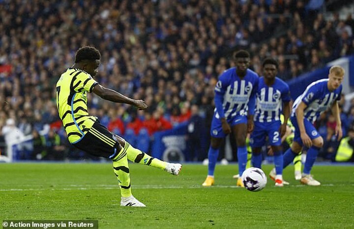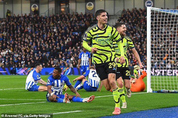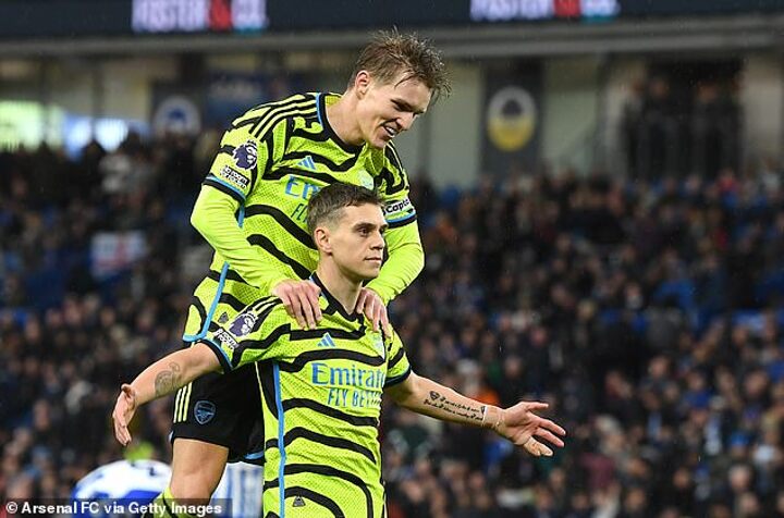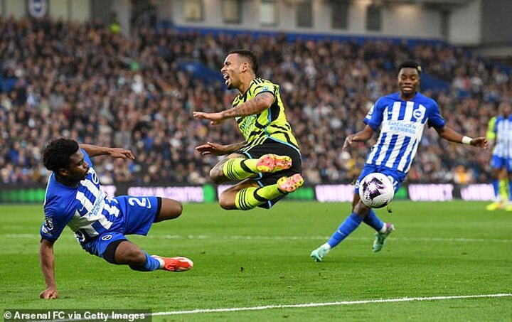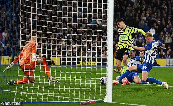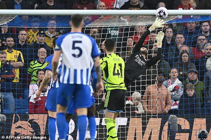 Gabriel Magalhaes ought to have scored with only a minute on the clock, from a free kick delivered by Martin Odegaard from the Arsenal left and headed wide. Brighton goalkeeper Bart Verbruggen left his line in a bid to cut out the curling cross but never came close and Gabriel planted a header wide of an open goal.