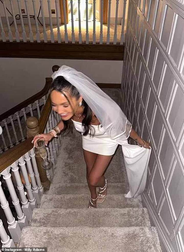 Milly decided to shun a traditional wedding dress in a favour of a chic waistcoat and trousers for the ceremony, writing on Instagram: '21.05.23 married my best friend.'