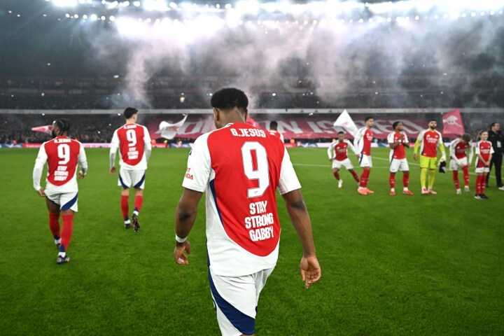 Ahead of the crunch match with arch-rivals Tottenham, Mikel Arteta's side wore shirts with the name "G. Jesus" alongside his squad number, 9, as they shook hands with their rivals.