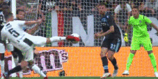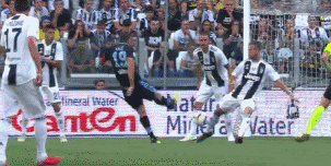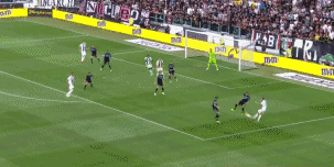 Ronaldo was there for a sure tap-in, but a slight deflection took the ball on to his heel. Fortunately for Juve it bounced perfectly for Mandzukic to hammer into an empty net from close range.