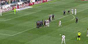 Ronaldo smashes his free-kick into the wall, but Juventus are still able to recycle possession to win a corner on the left flank.