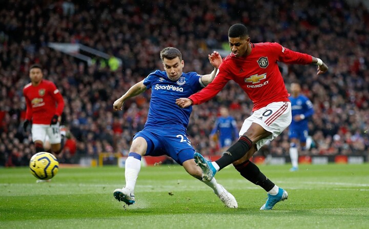 Rashford has his first sight of goal. The England international latches on to Lindelof's pass and takes the ball away from Everton's covering defenders, only to flash his shot wide from a tight angle.