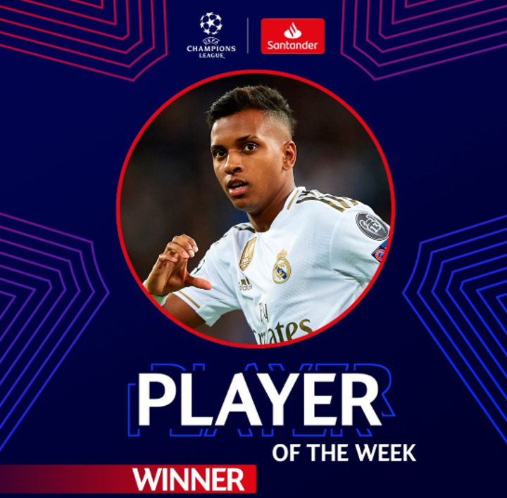 Real Madrid starlet Rodrygo is named UCL Player of the Week after his hat-trick heroics.