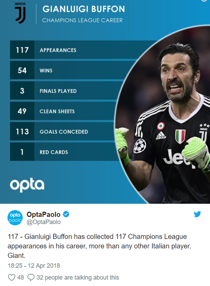 In last season's Champions League quarter-finals, Juventus were dumped out right at the death because of a controversial late penalty. Furious with the decision, Buffon led the protests, visibly shouting in referee Michael Oliver's face as Juve players surrounded him. The referee then produced the red card for the incensed Italian. Ronaldo's penalty subsequently ended the goalkeeper's Champions League career with Juve, while a post-match outburst made arguably the ugliest moment in Buffon's career even more deplorable.