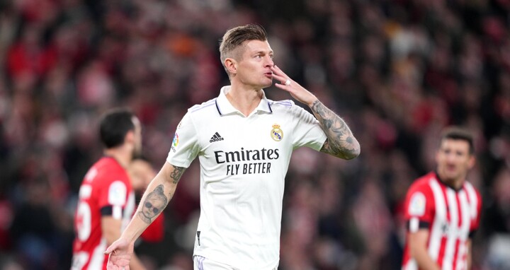 Karim Benzema opened the scoring with a classy volley into the bottom right corner in the first half before Toni Kroos added a safety goal in the 90th minute.