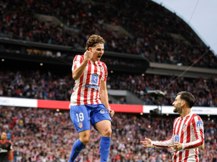 Substitute Tanguy Nianzou caught Jose Maria Gimenez on the thigh with his studs as he attempted to clear his lines, and the spot-kick was awarded following a VAR review. Alvarez picked out the bottom-left corner with his confident strike.