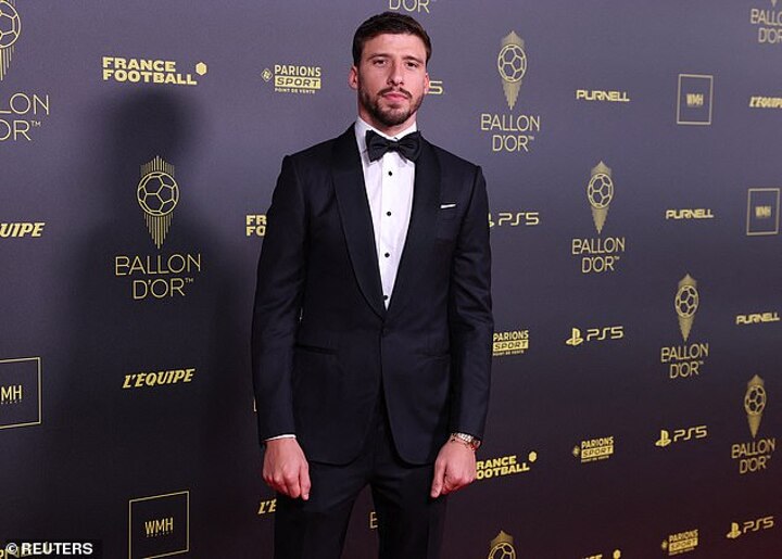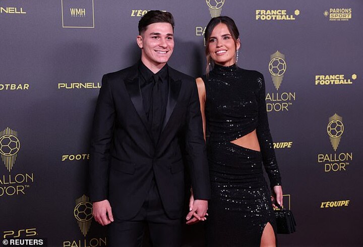 Erling Haaland - who is expected to finish high in the Ballon d'Or rankings after a record-breaking first season at Man City donned a navy tuxedo as he made his way into the theatre alongside girlfriend Isabel Haugseng Johansen.