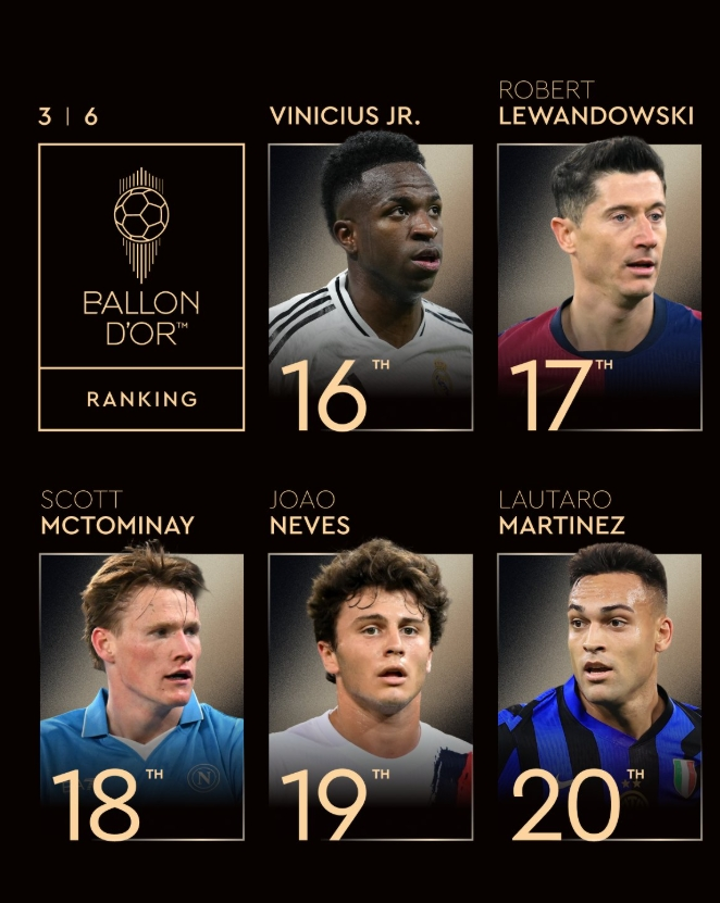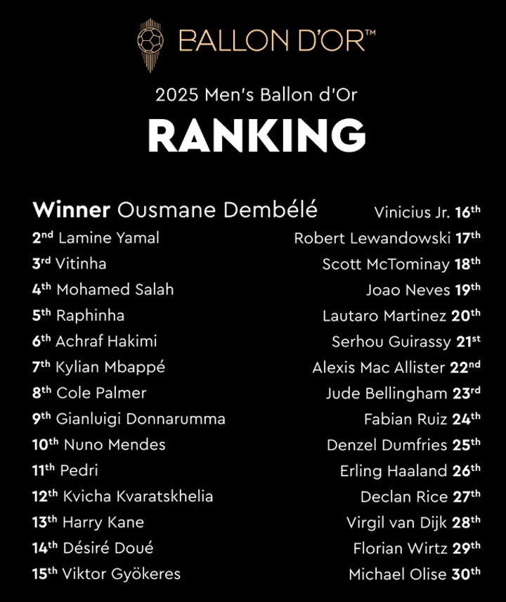 The final ranking of Ballon d'Or 2025: