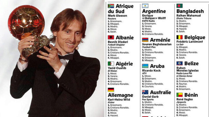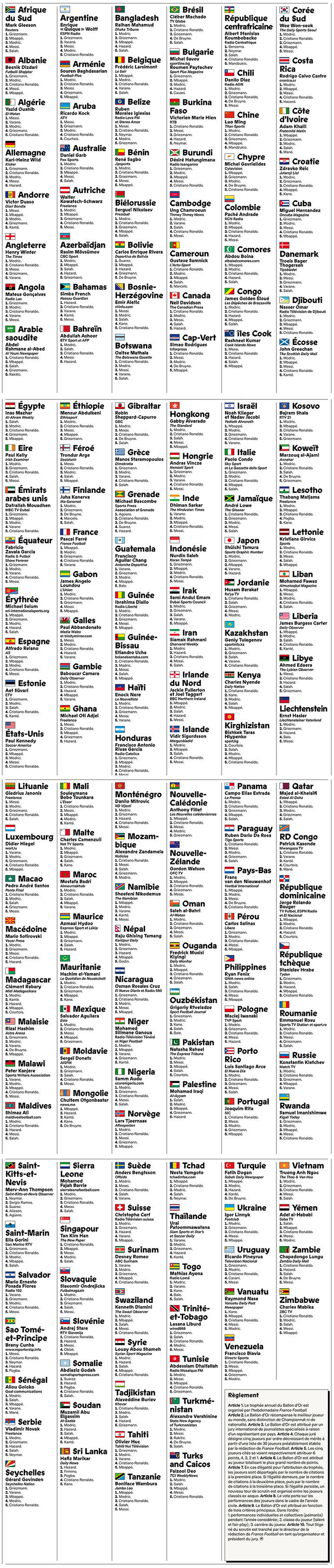 The award is given out each year by France Football and the magazine selected one journalist from each country to give their top five players for the calendar year.