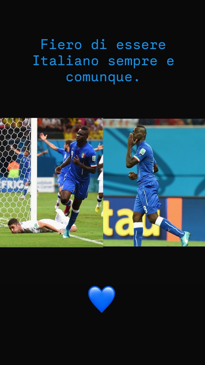 After Italy missed the World Cup in the United States, Canada, and Mexico, former Italian international Balotelli shared photos of himself representing the Italian national team on social media and encouraged the Italian national team: "Anyway, I am always proud to be Italian."