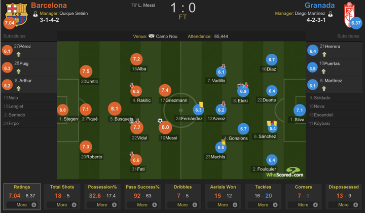 Dominateurs, les Catalans ont cependant dû attendre la 76e minute pour ouvrir le score face à Granada, et finalement s'imposer sur le score de 1-0.