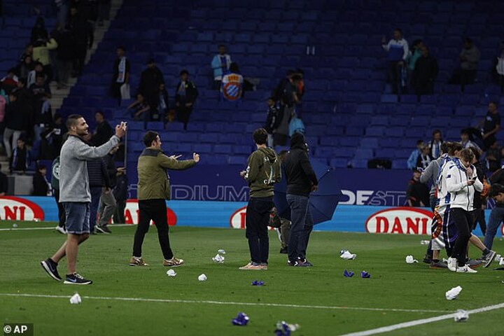 Barcelona's players were left fleeing the Espanyol pitch on Sunday as ultras stormed the pitch to confront the players.