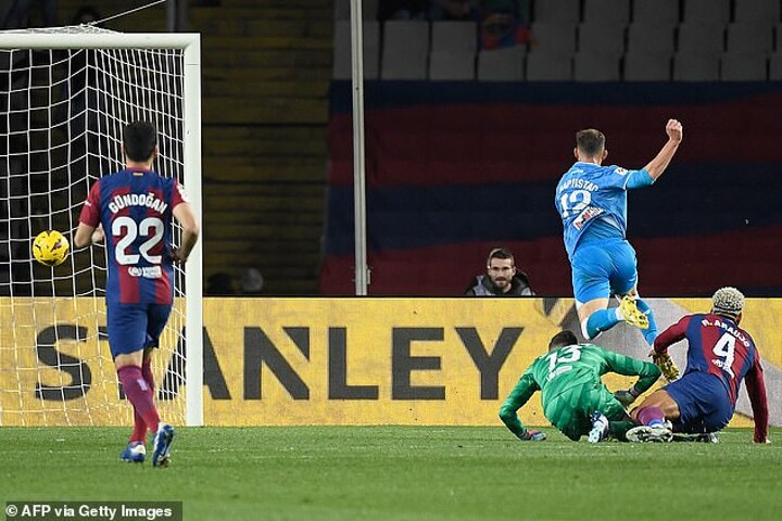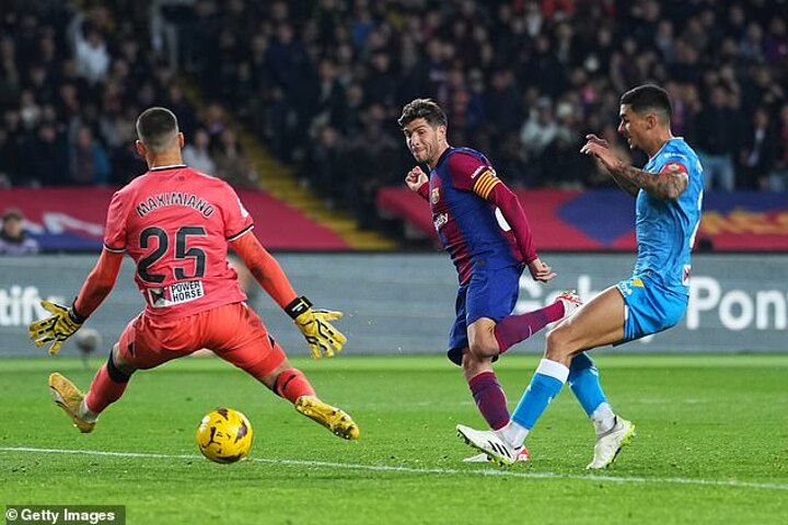 Finally Barcelona were back in front and it was simple when it came. Raphinha curled in a corner and Roberto sent it past Maximiano with a glancing header. They had been lucky to get the corner because the last touch was from Alejandro Balde.