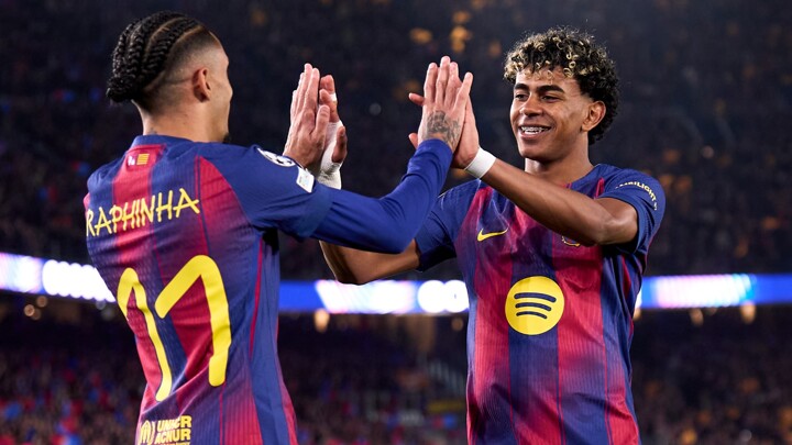 Raphinha and Lamine Yamal were the stars of the show at Camp Nou, while Robert Lewandowski, Fermin Lopez and Marc Bernal all got on the scoresheet after Anthony Elanga's first-half brace to tee up a last-eight meeting with either Atletico Madrid or Tottenham.