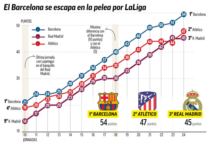 LaLiga Santander is in Barcelona's hands. The Catalans' lead had been reduced in recent weeks but Real Madrid's latest slip at the Estadio Santiago Bernabeu against Girona has allowed them to pull further clear at the top of the table.
