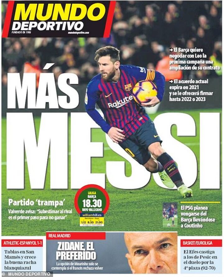 But, according to Mundo Deportivo, club president Josep Maria Bartomeu wants to offer Messi a fresh deal that would tie him to the Nou Camp until either 2022 or 2023.
