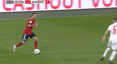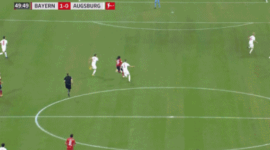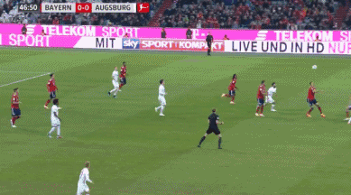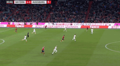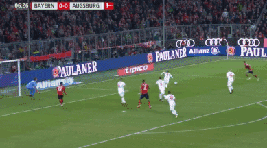 Muller hits the post! Augsburg are caught all over the place at the back, with Max hesitating as he tries to clear the ball. It allows Muller to get a shot away from a tight angle, but his deflected strike ends up kissing the outside of the post.