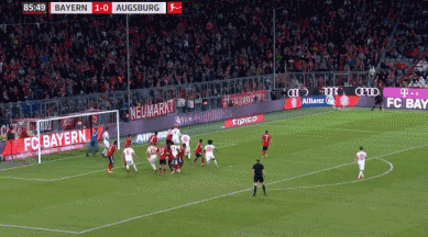 GOAL! Augsburg have equalised! A swinging corner is fumbled by Neuer and drops to Gouweleeuw, who then fires the ball off the chest of Gotze and into the back of the net from close range. Huge blow for Bayern!