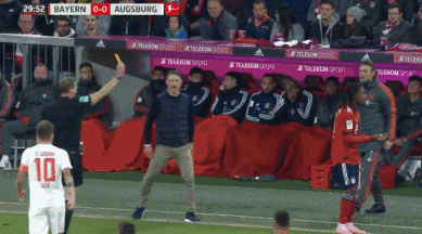 Sanches tangles with Framberger before catching Hahn with a high and mistimed challenge, leaving the referee with no choice but to book him.