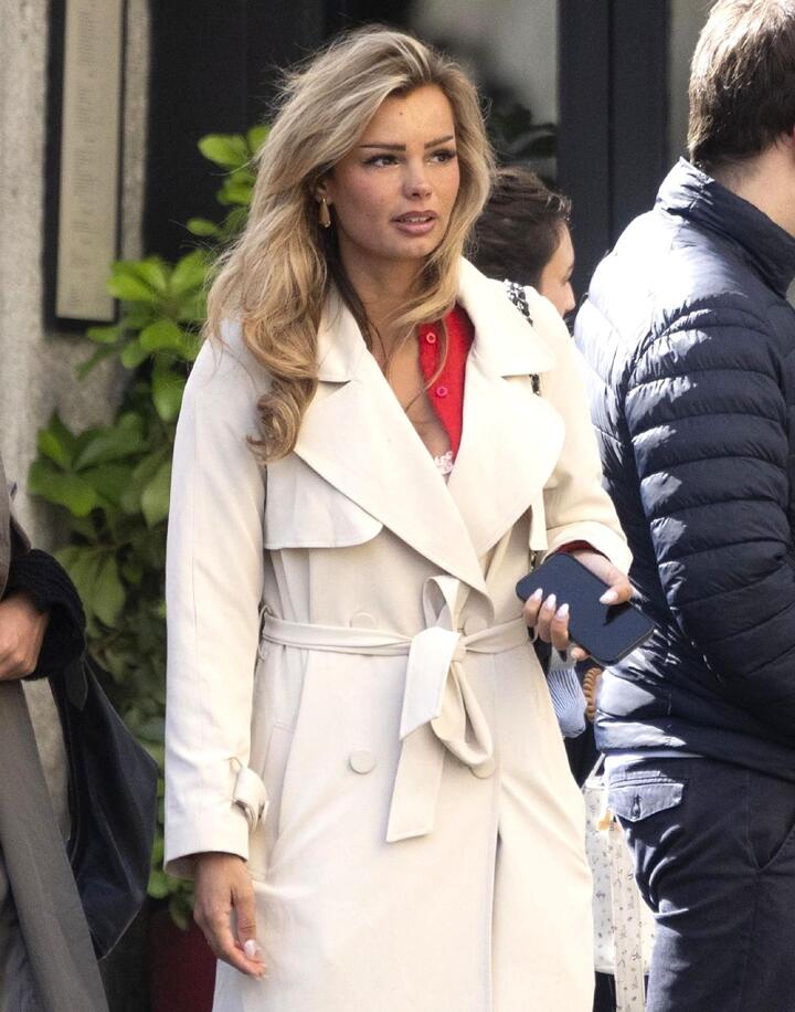 She was also seen wearing a cream trench coat, accessorising her outfit with silver trainers and a black leather Chanel handbag.