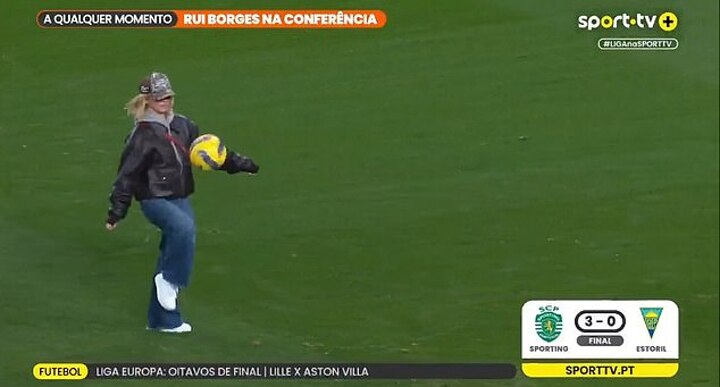 Sporting Lisbon fans were treated to a touch of stardust on their Friday night, with acting superstar Sydney Sweeney showing off her ball skills on the pitch.