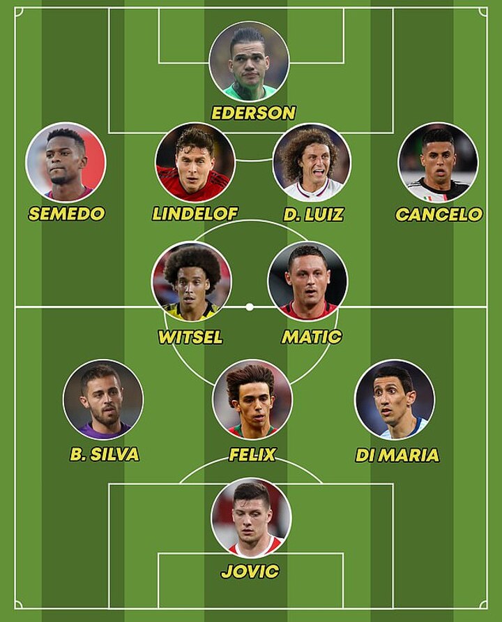 Jan Oblak (Atletico Madrid, £14m), Fabio Coentrao (Real Madrid, £26m), Ramires (Chelsea, £19m), Renato Sanches (Bayern Munich, £31m), Goncalo Guedes (PSG, £26m), Rodrigo (Valencia, £26m), Raul Jimenez (Wolves, £30m)