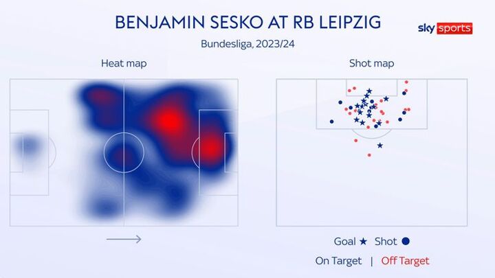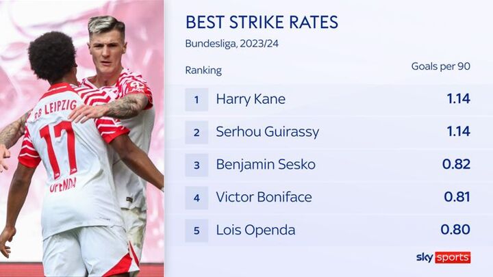 Indeed, only Harry Kane and Serhou Guirassy could boast better strike rates in the Bundesliga. Leipzig's counter-attacking style suited him with many of his chances coming after bursting clear with his pace but he was also a major threat from set-pieces.