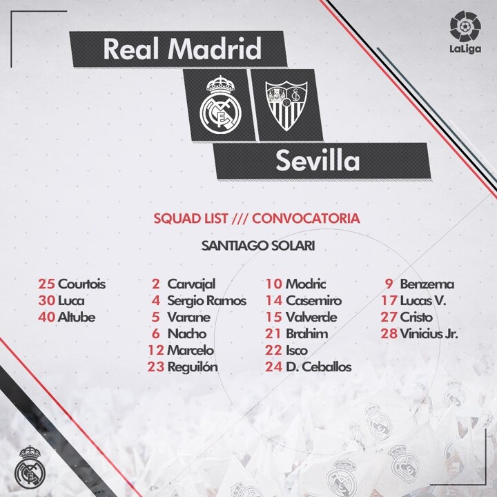 Real Madrid host Sevilla on Saturday afternoon and in their squad list, Santiago Solari has been unable to call upon seven players due to injury.
