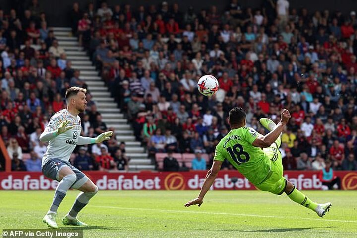 United started brightly and took the lead inside nine minutes when Casemiro adjusted his body brilliantly to acrobatically volley home Christian Eriksen's through ball. Bournemouth still carried a threat, though, with Dominic Solanke forcing a sharp stop from David de Gea.