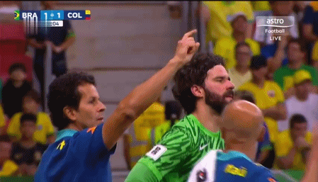 65' Colombia's goal is disallowed as the player fouls for hitting Alisson