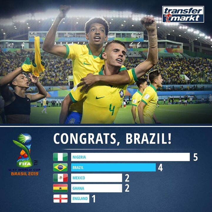 Nigeria is the most successful nation in the tournament's history, with five titles and three runners up. Brazil is the second-most successful with three titles and two runners-up. Ghana and Mexico have won the tournament twice.