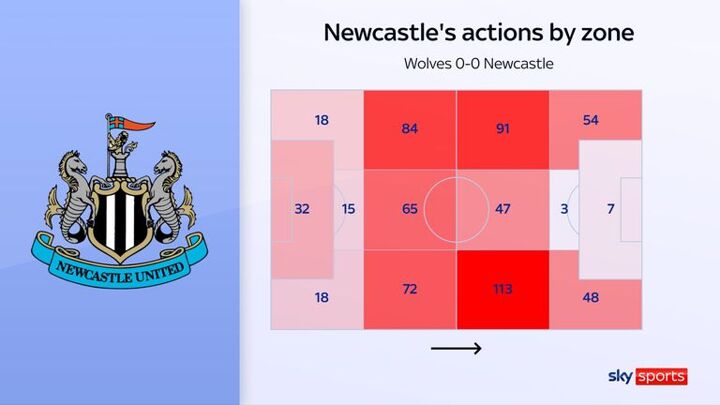 Indeed, at Molineux they became the team to have registered the highest passing accuracy without a shot on target in the first half of a Premier League game since Opta began collecting such records. Wolves dropped deep. All Newcastle could do was cross the ball.