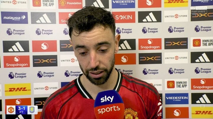 In the 30th round of the Premier League, Manchester United defeated Villa 3-1 at home. Manchester United captain Bruno Fernandes, who provided two assists in this game, was interviewed by Sky Sports after the game.