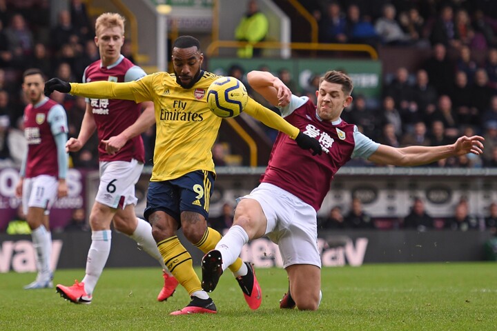 Lacazette holds the ball up to the left of Burnley's box and elects to curl a cross in himself. He finds Aubameyang whose header fizzes past the left-hand post.