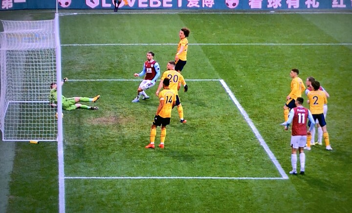 The crowd can't believe it! McNeil rises high in the box and nods down to Rodriguez. Rodriguez cannons a shot off the crossbar which bounces down right onto the goalline and Leno swipes it away. Nine times out of 10, that goes in. That's the closest we've come to a goal yet!