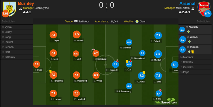 The Gunners had won their last 11 meetings with Burnley in all competitions but Mikel Arteta's men did not do nearly enough to extend that run as they again failed to make up significant ground on the top four.