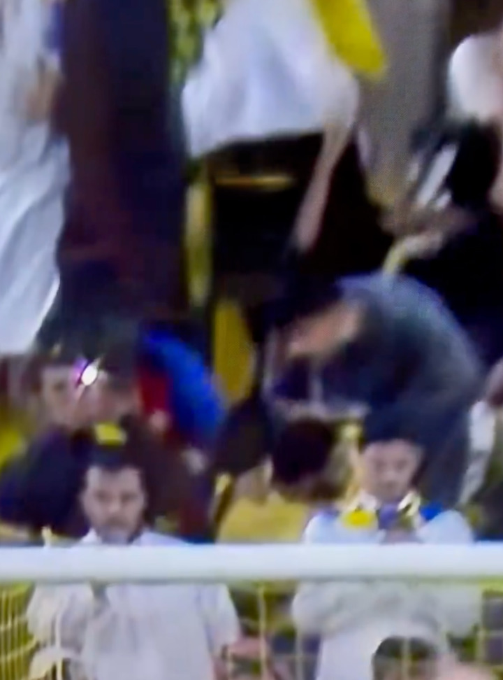 Ronaldo's powerful pen slammed directly into the youngster behind the goal, knocked him to the ground and saw his phone fly out of his hand.