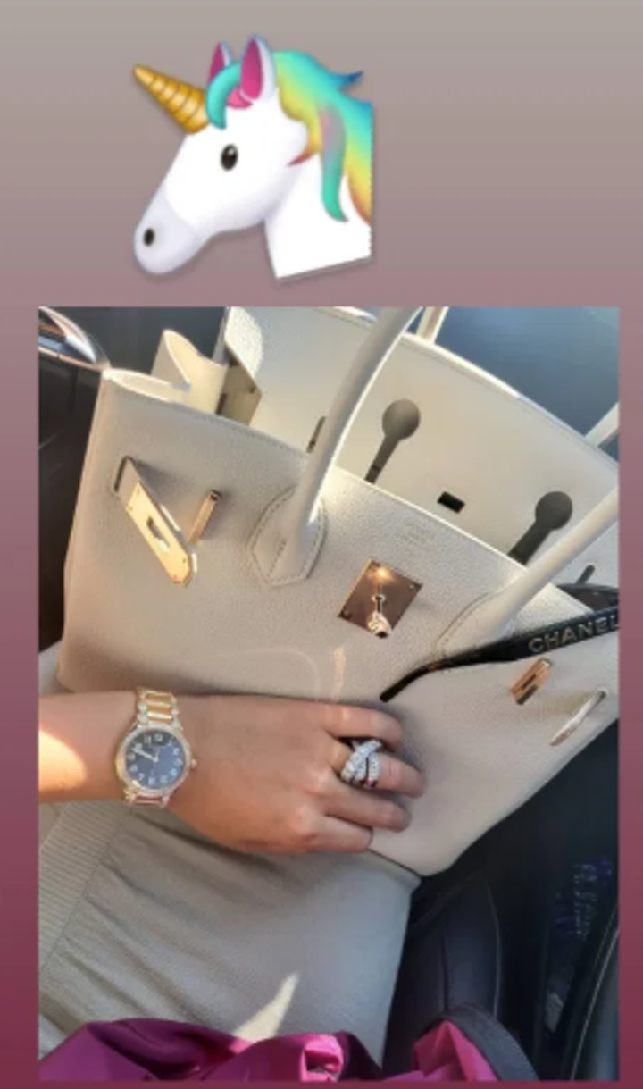 And the second on her Instagram story shared to her 18.2million followers was a close-up of the enormous ring on her wedding ring finger alongside a Chanel handbag.