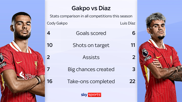 "That's normal if you play at a club like Liverpool, you've got two quality players for many positions," said Slot. "For me, Gakpo is a regular starter. He's not starting every game, but he started on a regular basis. And he's in a tough competition with Luis Diaz."