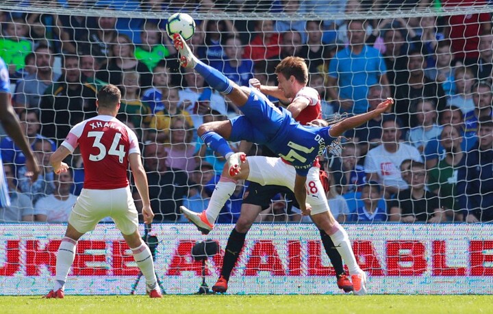 ARTER SHOULD DO BETTER! After the free-kick, Sokratis passes it to Cech who holds it momentarily before passing it centrally – intended for Guendouzi. The pass is very poor and its intercepted on the edge of the area by Arter who has a free shot at goal – which he sends high above the crossbar.