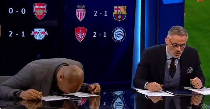 But Carragher couldn't get past the first syllable of Ilenikhena, prompting the French legend to slam his head onto the table in laughter.