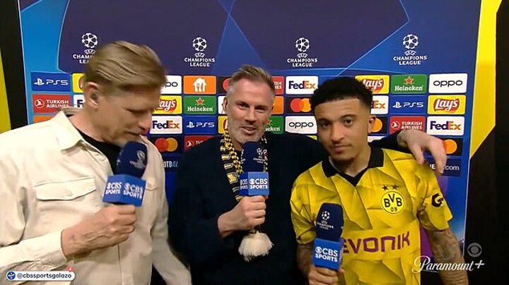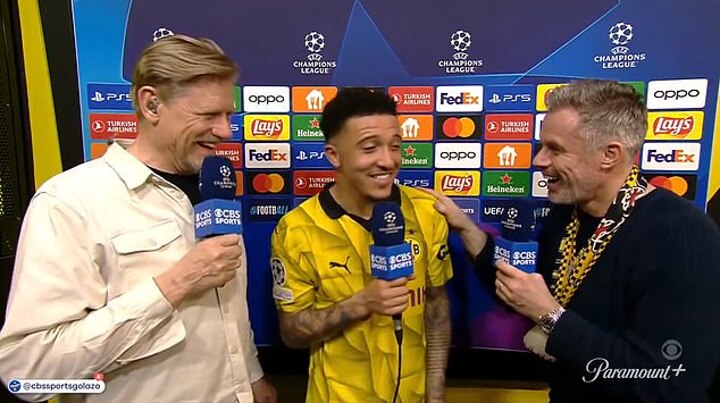 Carragher, wearing a Dortmund scarf, conducted much of the interview with his arm around Sancho, leaving the CBS studio panel cracking up with laughter.