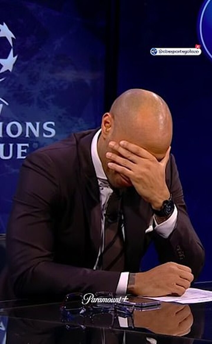 Thierry Henry sat with his head in his hands, before anchor Kate Abdo made an amusing joke at Carragher's expense.