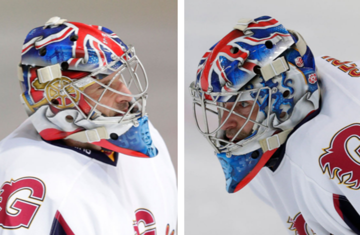 What's more interesting, the goalkeeper wears a special helmet in the game - with Arsenal badge on the one side and Chelsea badge on the other.