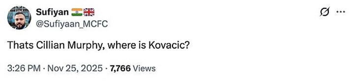 'That's Cillian Murphy, where is Kovacic', a fourth posted, referring to the award-winning Irish actor.